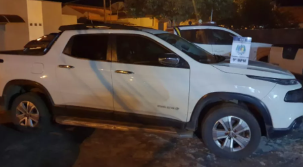 Na perseguição, perderam o controle da caminhonete e saíram da pista. Nesse momento, os suspeitos decidiram abandonar o veículo e fugiram a pé por um matagal.