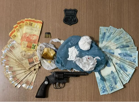 A operação de combate ao tráfico de drogas resultou na apreensão de cerca de 120g de cocaína (três porções médias) e 53g de crack (uma porção média e uma pequena), um revólver calibre 22, quatro munições, carne de animal silvestre (tatu) e R$ 6.347,00 em espécie. O preso e a mulher de 24 anos já possuem condenação anterior por tráfico de drogas e estavam em liberdade condicional.