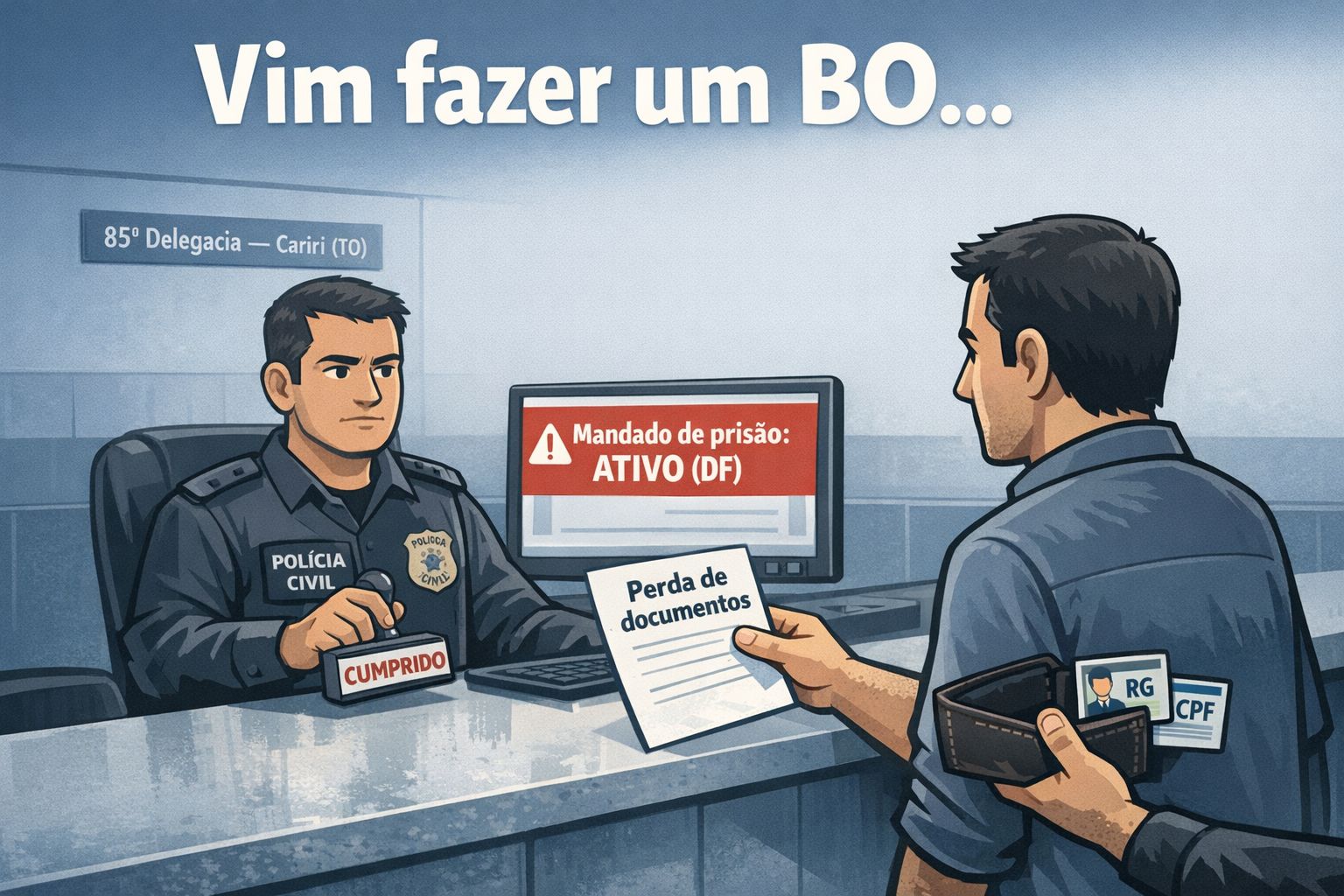 Um homem de 31 anos, procurado pela Justiça do Distrito Federal por tráfico de drogas, foi preso pela Polícia Civil do Tocantins ao comparecer à 85ª Delegacia de Cariri para registrar um boletim de ocorrência de perda de documentos. A detenção ocorreu na tarde desta terça-feira (24), após consulta policial identificar um mandado de prisão preventiva em aberto.