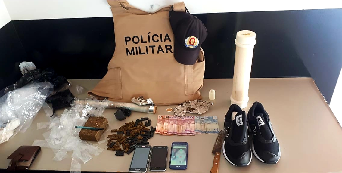 A Polícia Militar (PM) prendeu na manhã desta sexta-feira, 17, em Alvorada, um homem, 51 anos, acusado de tráfico de drogas. Na residência do autor os policiais localizaram 560 gramas de produtos entorpecentes análogos à maconha e ao crack, R$ 377,00 reais em dinheiro, três aparelhos celulares, uma arma branca (faca), um rolo de papel filme, um par de tênis e uma motocicleta Honda Fan 150, cor preta.