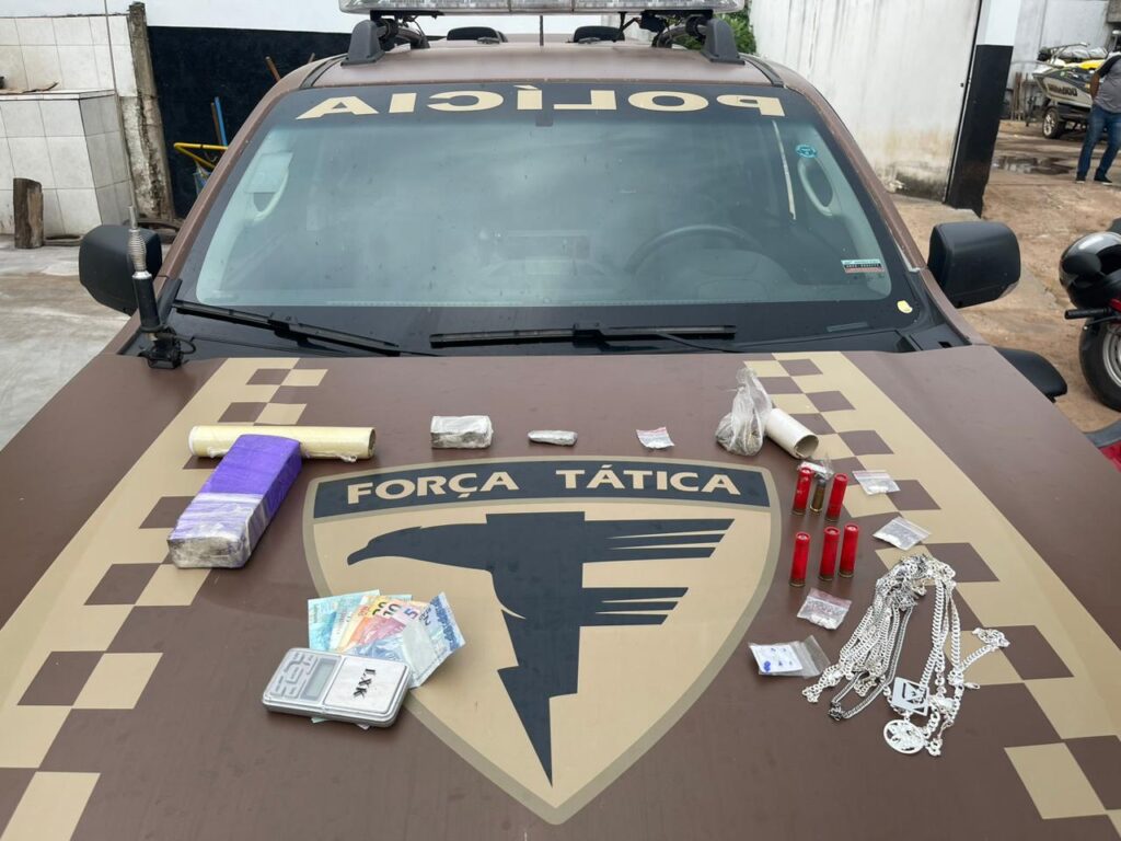 Na busca foi localizado dentro da sacola 500g de maconha e o acusado relatou que estava indo entregar a droga para um rapaz no setor. “O envolvido nos relatou também que havia mais drogas em uma residência, deslocamos até lá e foi localizado maconha, cocaína, balança de precisão, munições e bijuterias.