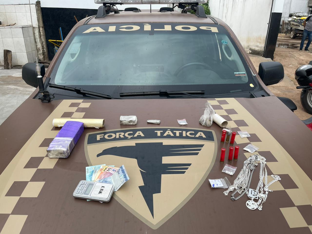 Os materiais foram recolhidos e apresentados juntamente com o indivíduo na Delegacia de Polícia Civil.