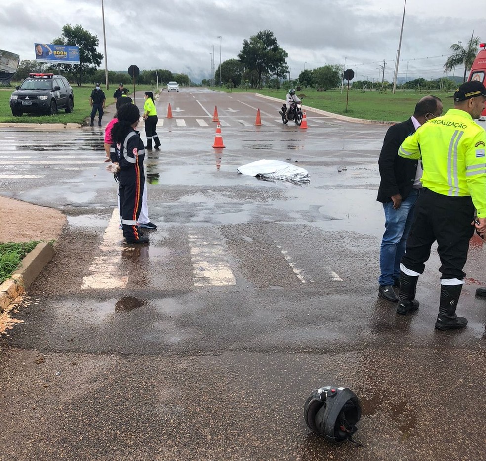 Um homem morreu após uma batida envolvendo um caminhão-baú e uma moto no cruzamento da Teotônio Segurado com a Avenida Parque, na região sul de Palmas, próximo de uma universidade.