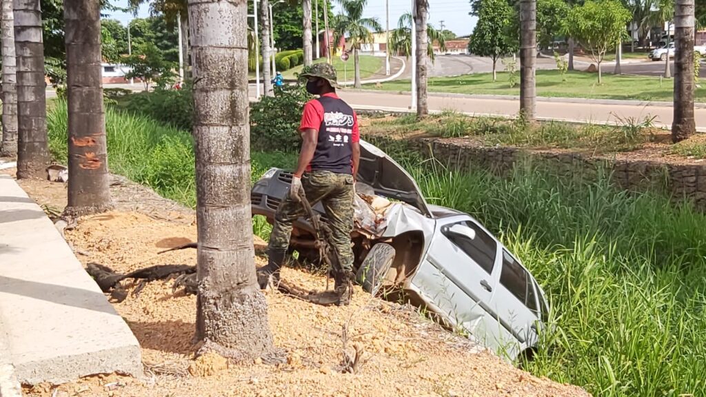 A Polícia Militar informou que o acidente aconteceu depois que o condutor perdeu o controle do veículo no momento em que descia por uma rua do setor União. O carro subiu na calçada, colidiu em uma árvore e caiu no córrego Mutuca.