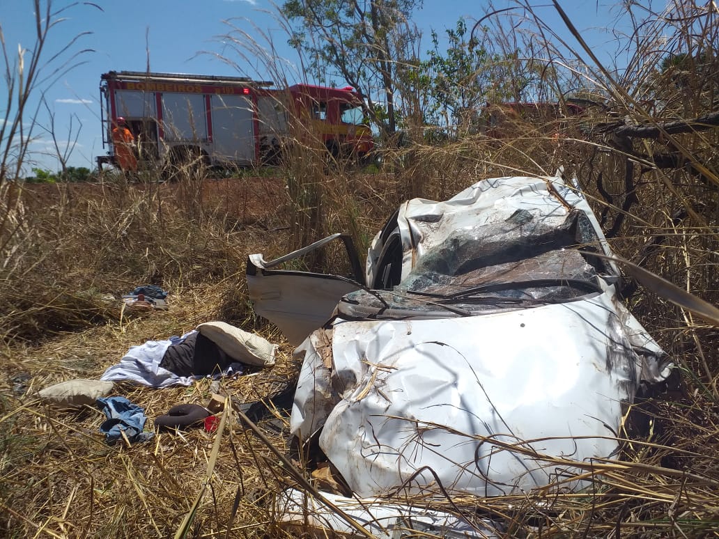 “No local encontramos as três vítimas já fora do veículo, sendo que uma delas já em óbito”, informou o Corpo de Bombeiros. A vítima é uma mulher, que não portava documentos pessoais e que estava gestante.