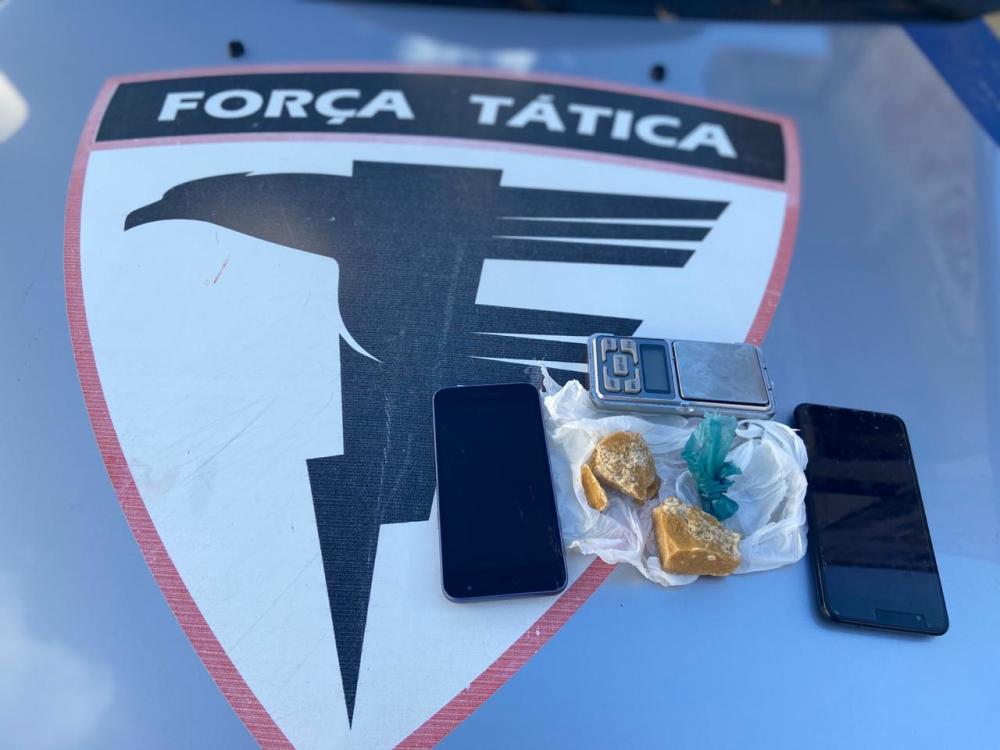 Em poder dos envolvidos foram encontradas porções de substância análoga ao crack, uma balança de precisão e dois aparelhos celulares.