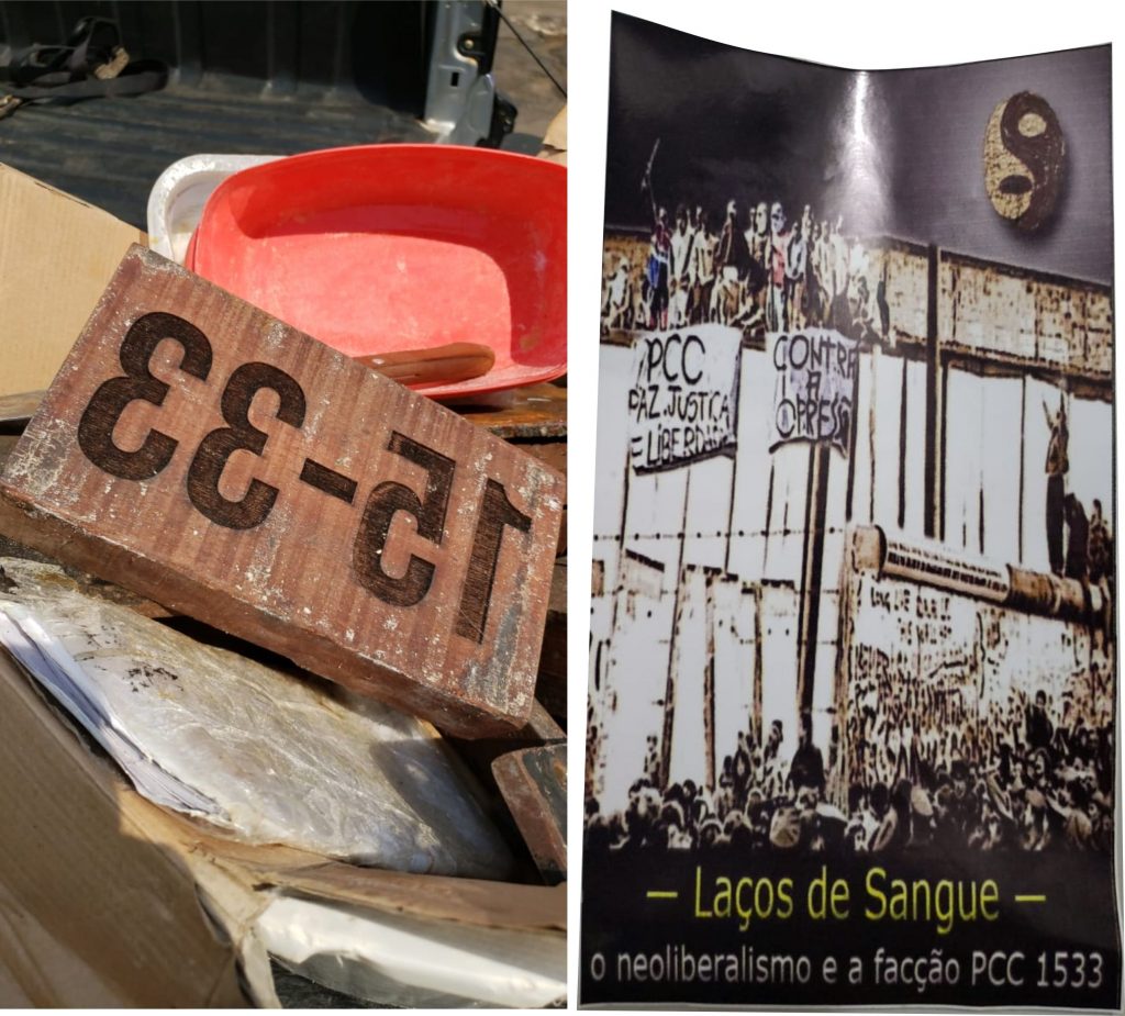 “O local era um laboratório de drogas, foi encontrado ainda várias prensas que serviam para prensar os entorpecentes e adesivos relacionados a uma facção criminosa”, destacou o comandante.