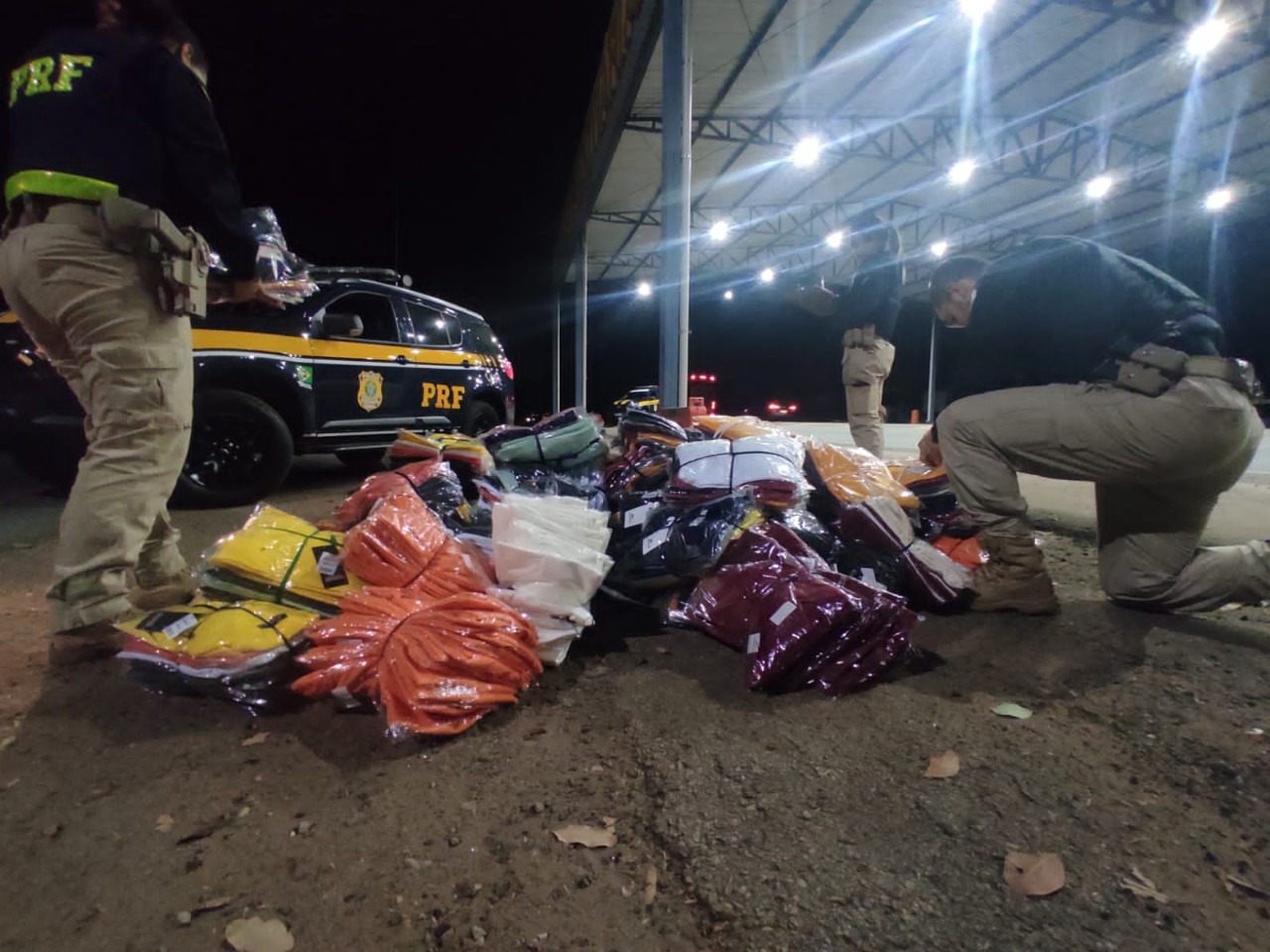 A equipe da PRF apreendeu 858 produtos, sendo eles, 785 camisetas, 38 pares de sandálias, 10 unidades de bolsas, 15 camisas e algumas unidades de pingentes e correntes. Em razão de o veículo também estar com passageiros a carga foi transferida para um caminhão e o ônibus foi liberado