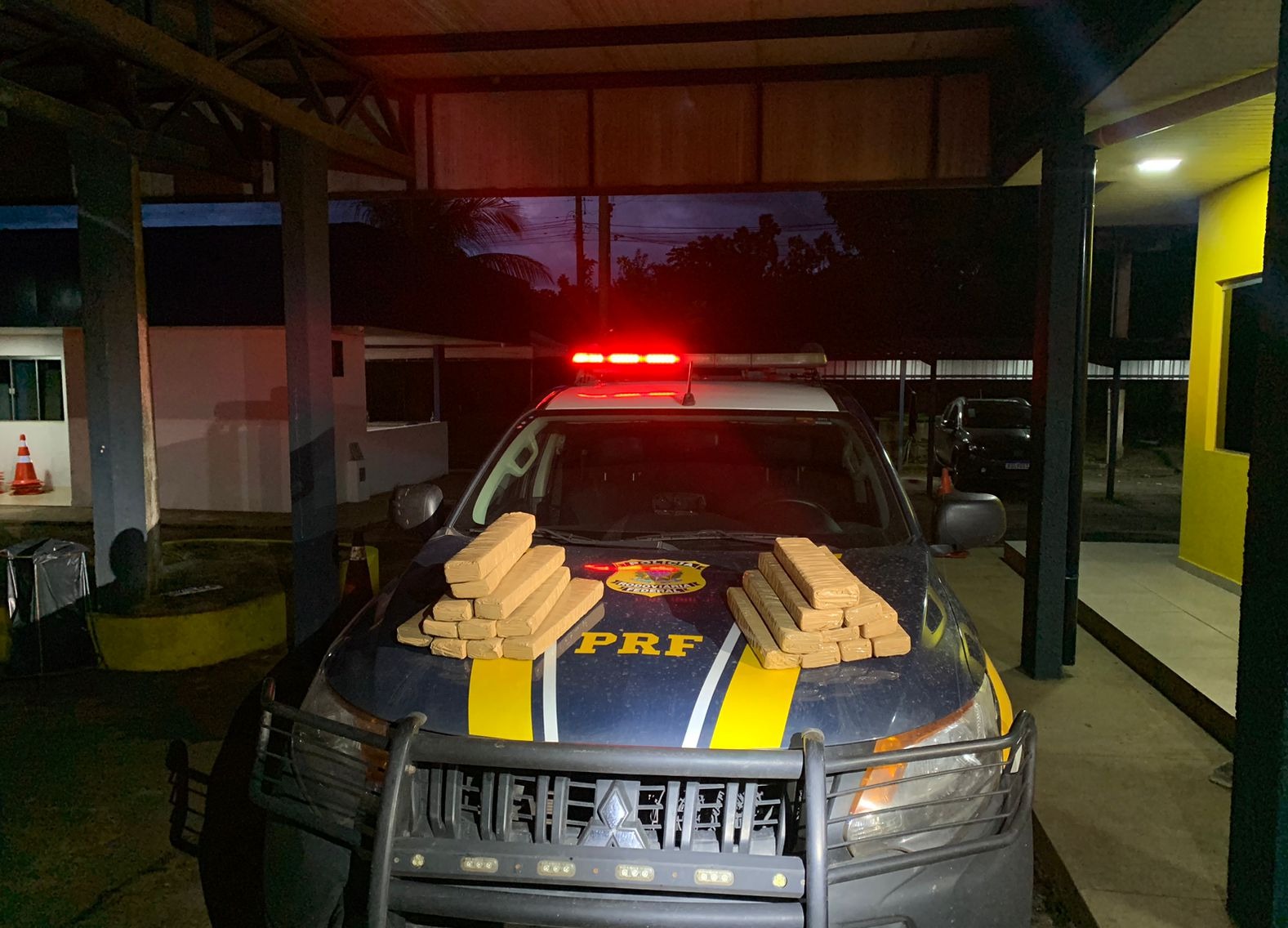 Em procedimento de fiscalização no km 332 da BR 153, foi dada ordem de parada ao ônibus rodoviário Volvo/Comil de cor laranja, com origem em São José/SC e destino final a Belém/PA. Durante análise do compartimento de bagagens do veículo, foram localizados, dentro de uma mala, 21 tabletes de substância análoga à maconha envolvidos em fita plástica marrom, totalizando 19.8kg.