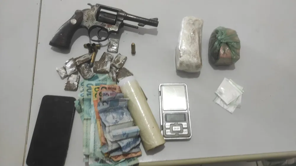 Ainda segundo a polícia, o suspeito morto estava com um revólver, drogas, dinheiro e objetos utilizados para o tráfico.
