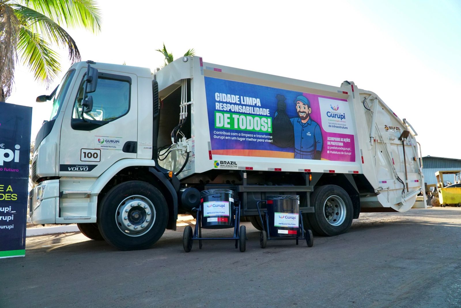 Ainda pela manhã, na sede da Secretaria Municipal de Infraestrutura, a prefeita Josi Nunes realizou a entrega oficial de um novo caminhão coletor de lixo, adquirido com recursos próprios, e de kits de tênis e equipamentos para os coletores de resíduos sólidos do município.