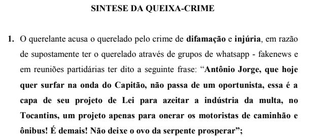 “Sempre ele alega a mesma coisa como injúria, difamação e faz uma escândalo pela crítica que eu fiz a ele e a considera com injúria, calúnia, difamação e insinua como se eu fosse uma pessoa que espalha fake News e que fica atuando contra a reputação das pessoas. Ele cita uma parte do código eleitoral voltado para as pessoas que contratam empresas robôs para difamar a reputação de candidatos”, disse.