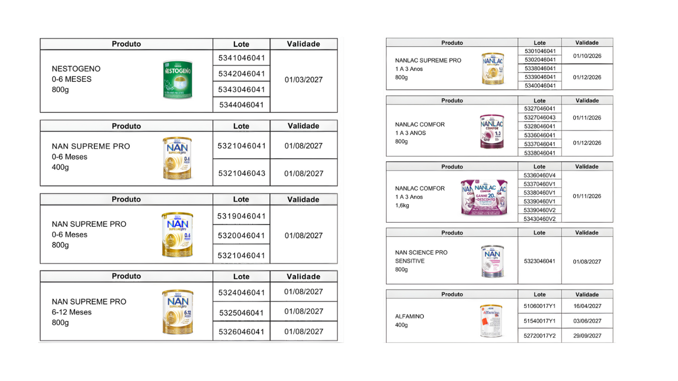 A medida foi oficializada por meio da Resolução nº 32/2026, publicada nesta quarta-feira, 7, e envolve produtos das marcas Nestogeno, Nan Supreme Pro, Nanlac Supreme Pro, Nanlac Comfor, Nan Sensitive e Alfamino