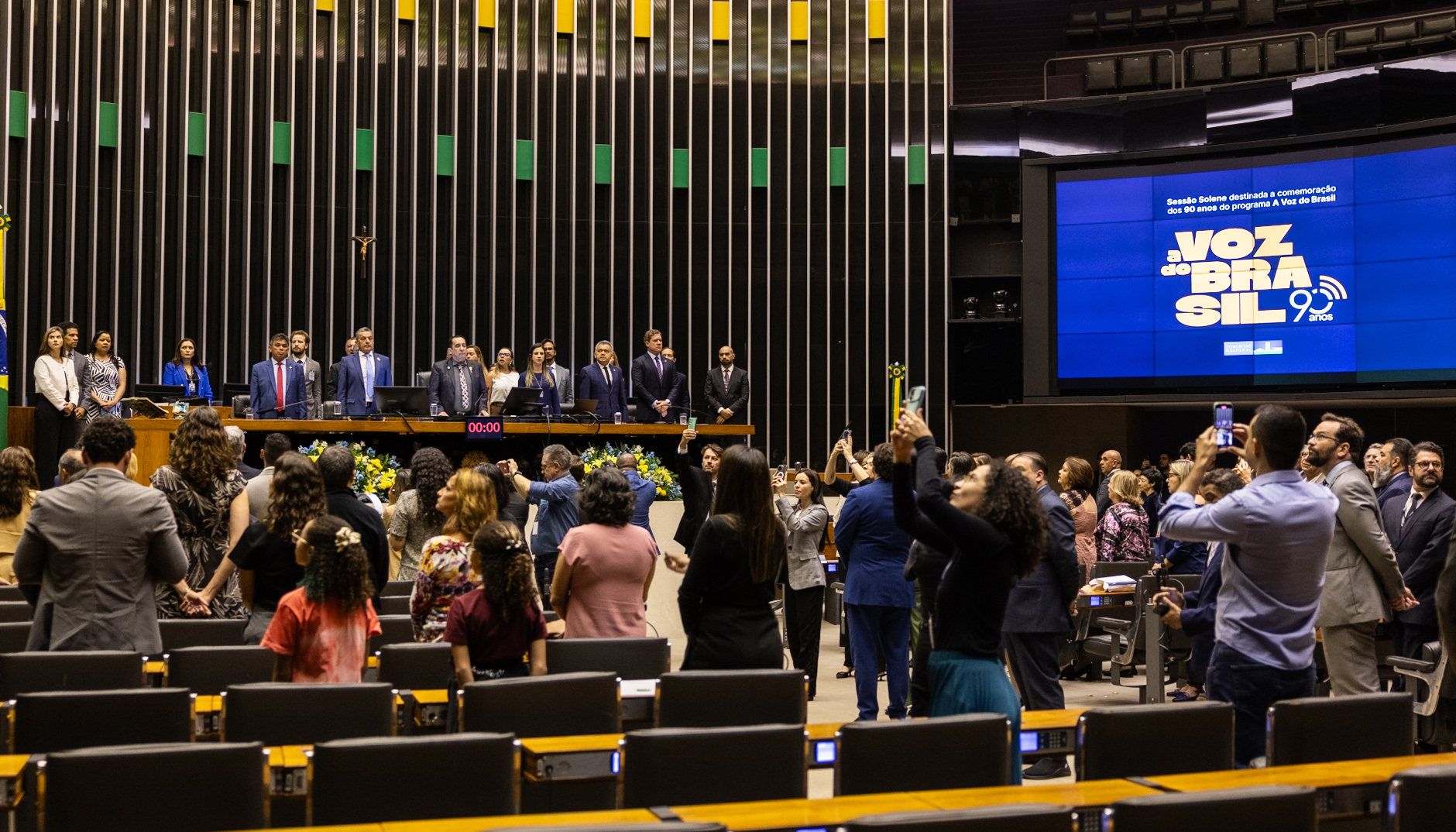 O secretário de Estado da Comunicação, Márcio Rocha, representou o governador do Tocantins, Wanderlei Barbosa, na sessão solene realizada nesta terça-feira, 5, pelo Congresso Nacional, em Brasília/DF, que celebrou os 90 anos do programa A Voz do Brasil. O evento, que ocorreu no Plenário da Câmara dos Deputados, contou com a presença de autoridades, representantes da comunicação pública e parlamentares de todo o país.