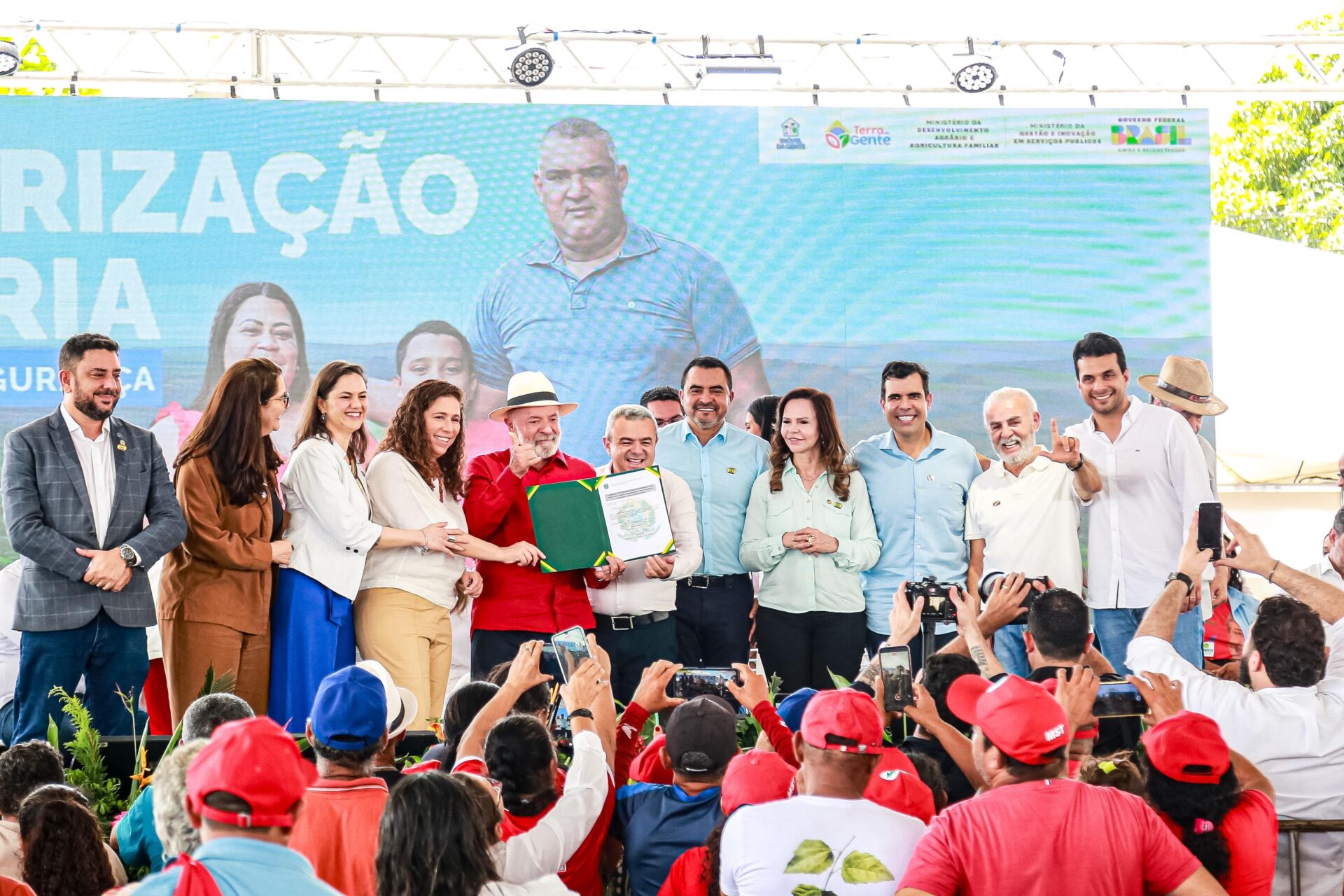 Na ocasião, foi assinada a parceria entre o Governo Federal e o Governo do Estado do Tocantins para destravar o processo de regularização fundiária em todo o estado. Participaram do evento os ministros Esther Dweck, de Gestão e Inovação; Paulo Teixeira, de Desenvolvimento Agrário e Agricultura Familiar, Anielle Franco, da Igualdade Racial, o Governador Wanderlei Barbosa (Republicanos), o senador Irajá Abreu, os deputados federais Carlos Gaguim, Ricardo Ayres, entre prefeitos e lideranças locais.