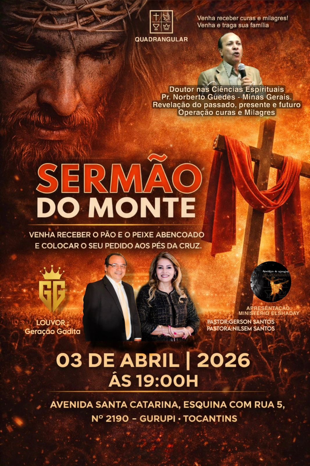 O tradicional Sermão da Montanha já tem data marcada e promete reunir centenas de fiéis em mais uma noite de fé, milagres e comunhão em Gurupi, no sul do Tocantins. O evento, que acontece há mais de 20 anos, já faz parte do calendário cultural e religioso da cidade, consolidando-se como um dos maiores encontros cristãos da região.