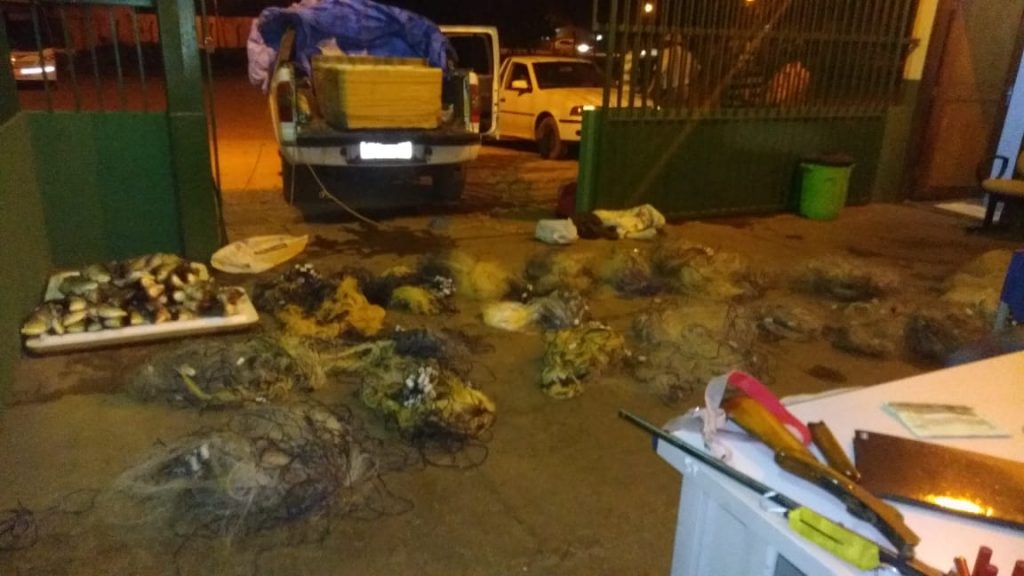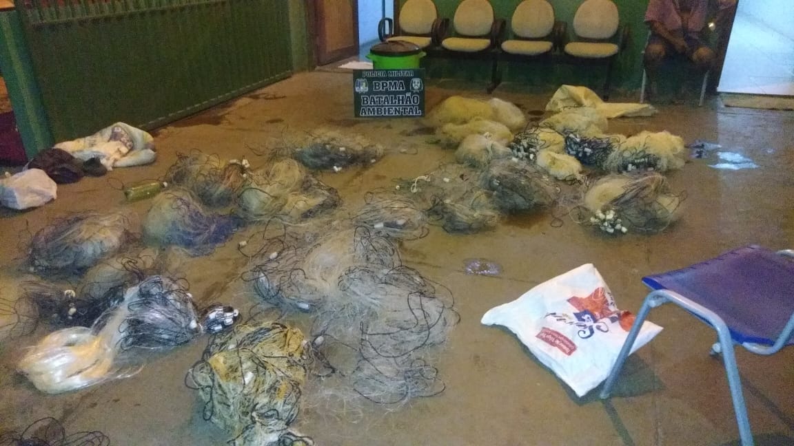 Ao todo foram apreendidos 55 kg de pescado diversos acondicionado em uma caixa de isopor, transportados em período proibido no Tocantins (cota zero), 24 redes de emalhar, três tarrafas, 4 arpoēs e 13 anzóis de pinda, uma espingarda calibre 28 e 5 cartuchos intactos do mesmo calibre.