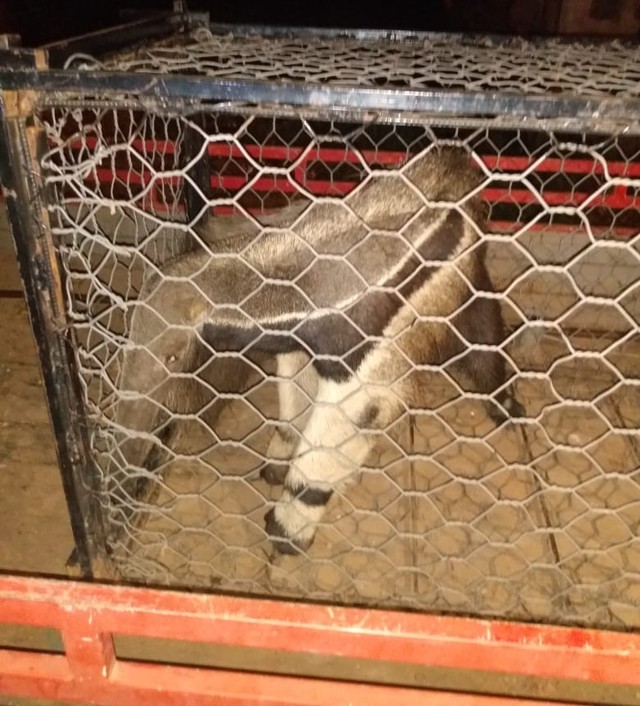 Um tamanduá bandeira foi resgatado pelo Corpo de Bombeiros após ser visto dentro de uma casa em Gurupi, no sul do Tocantins. De acordo com os militares, o animal silvestre estava na sala da residência.