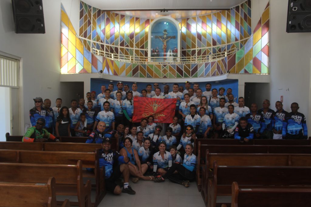 A fé, a devoção foi abrindo caminho para os ciclistas, que ao longo do percurso já demonstravam o cansaço sobre duas rodas. O esforço coletivo motivou a equipe, que comemorava a chegada de cada integrante nos pontos de parada.