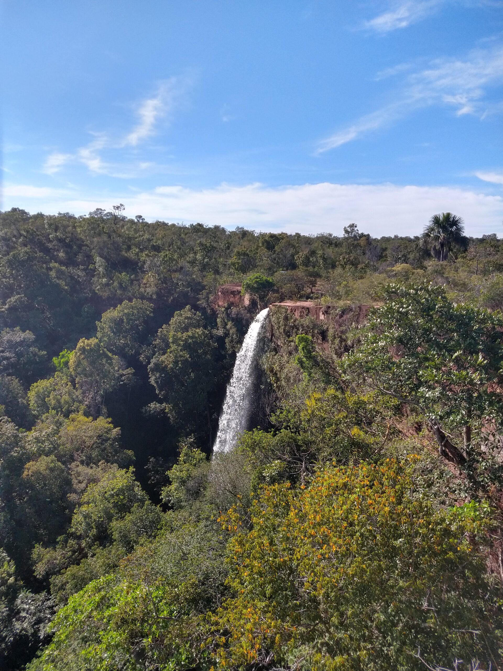 A primeira cachoeira a ser visitada é chamada de Urubu Rei. Uma queda dágua de 70 metros de altura, mas o que chama atenção é o parte de cima que oferece um lindo mirante que mostra a grandezas do cerrado.