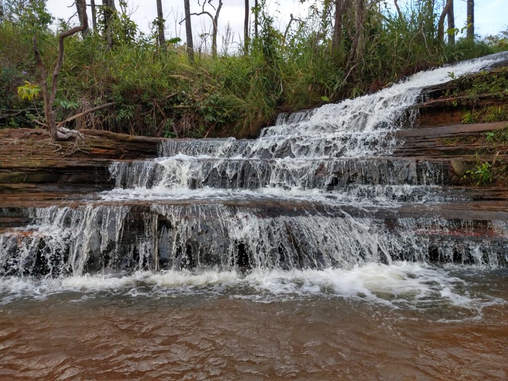 A terceira e última cachoeira é a da escadaria, pois a rocha que a água passa por cima forma uma escada.