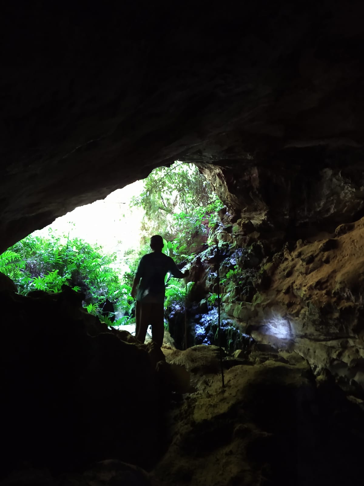 Antes de chegarmos na cereja do bolo é feita uma visitação obrigatória em uma gruta escondida pelas matas. Entrando lá, nos deparamos com uma linda cachoeira de quase 90 metros de altura e com um visual de encher os olhos. Andorinhas transitam com frequência e fazem sua morada.