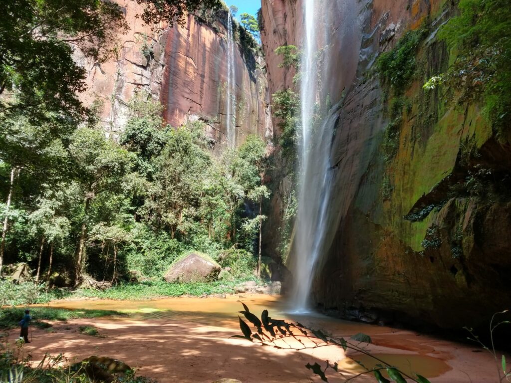 O cânion são quatro quedas d’água simultâneas com mais de 70 metros de altura e pode ser contemplado tanto por cima, como por baixo. Para chegar lá, fui com o Gilvane Elias, conhecido popularmente na região como Alminha, um guia que conhece tudo sobre cerrado e fauna. “Tem que ter muito preparo físico, pois a caminhada é longa”, alerta Alminha antes de guiar todos os seus turistas.