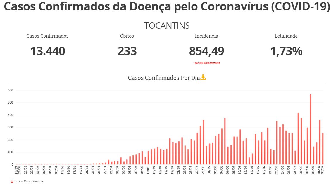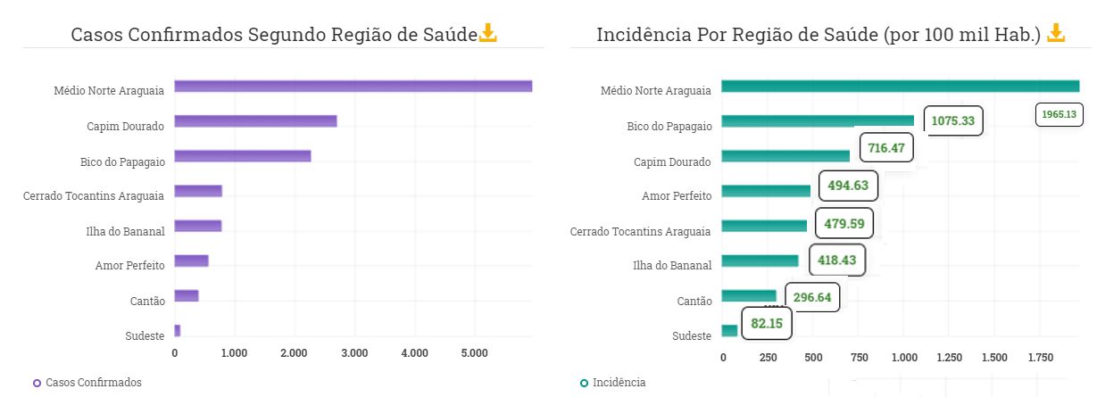 A região do Bico do Papagaio com seus 24 municípios e 201 mil habitantes contabilizou 2.256 casos, enquanto a região do Cerrado do Tocantins com 23 municípios e 154 mil habitantes contabilizou 776 casos da Covid.