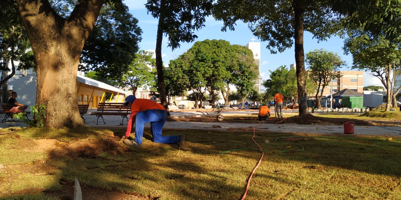 Trabalhadores aceleram o ritmo para entregar praça no Dias das Mães em Gurupi