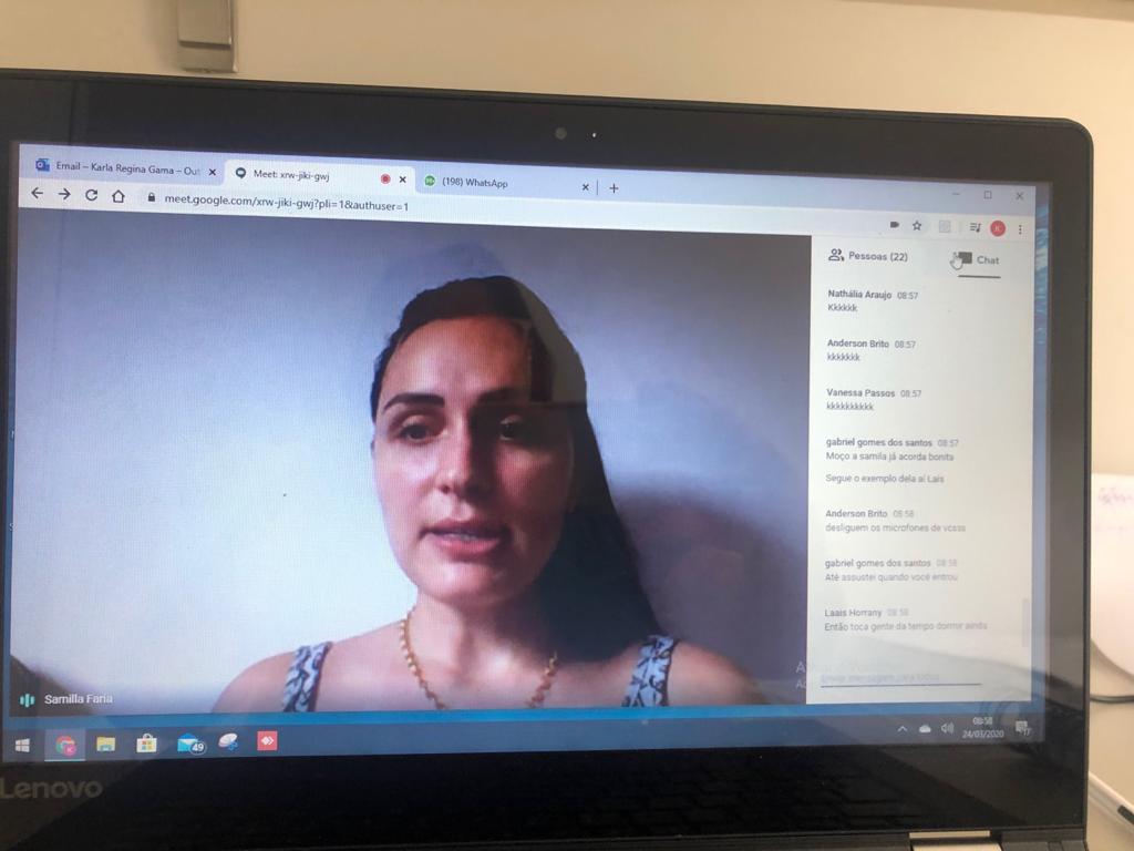 “Por meio de uma videoconferência professores, coordenadores e representantes de todas as turmas reuniram-se para explicarmos o uso das ferramentas e sanar todas as demandas questionadas. Percebemos que alguns alunos têm dificuldades básica de conhecimento com a tecnologia, mas todos estão ajudando e se esforçando”, relatou o professor.