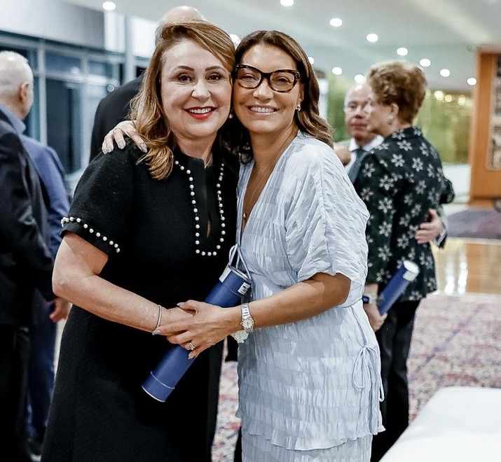 A primeira-dama Janja Lula da Silva e a ex-senadora Kátia Abreu durante jantar no Palácio da Alvorada.
