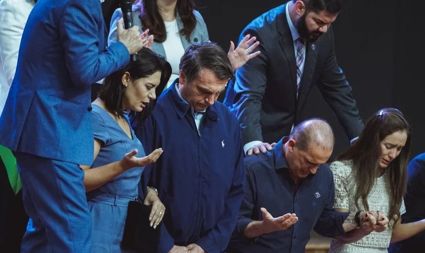 Na manhã de sexta-feira (19), Bolsonaro marcou sua presença no encontro e falou sobre sua relação com os cristãos, ao lado dos líderes do ministério, os bispos Robson e Lúcia Rodovalho.
