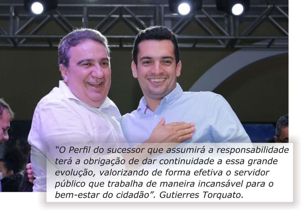 Gutierres Torquato é nome político mais próximo na linha de sucessão ligada ao prefeito Laurez Moreira (PSDB). Porém, terá que trabalhar para ganhar o apreço dos eleitores, caso for referendado pelo prefeito Laurez Moreira que tem como ponto positivo possuir um governo bem avaliado na opinião pública.