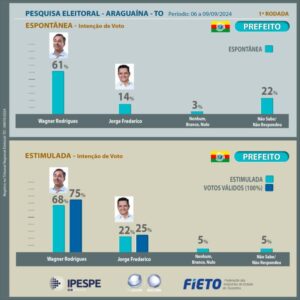 Por Redação Pesquisa Quantitativa face a face realizada no município de Araguaína-TO de 06 a 09 de setembro de 2024.…