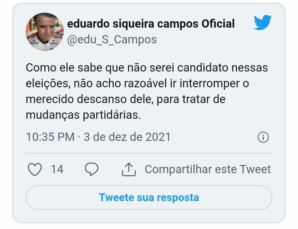 Eduardo relatou nas redes sociais que sempre foi um admirador da articulação política, da habilidade ao lidar com cenários e pessoas, mas que a filiação de seu pai ao PL tem limites e que isto não pode beirar a esperteza ou oportunismo.