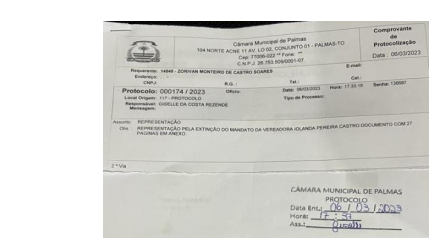 Fato é que o vereador Zorivan Monteiro, pode ter a chance de assumir, porque ele protocolou nessa segunda-feira (06), na Câmara Municipal de Palmas, uma representação pela extinção do mandato da vereadora Iolanda.