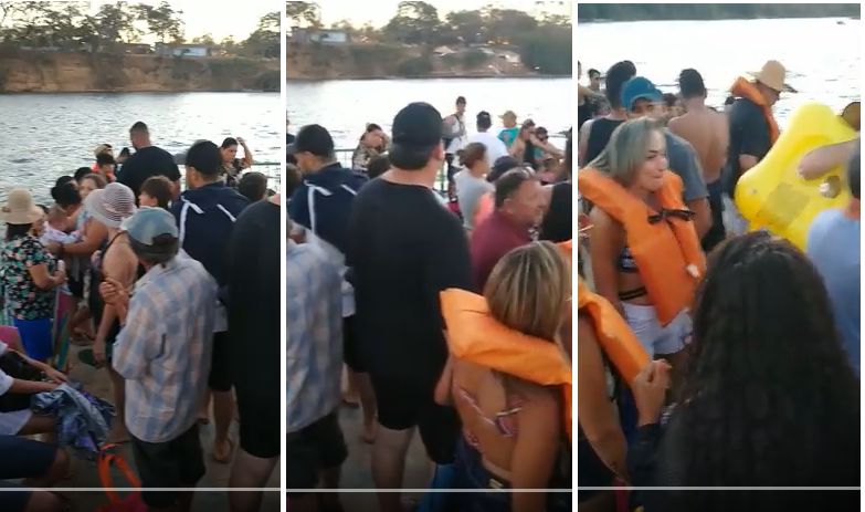 Além da imagem que mostra uma grande quantidade de pessoas na balsa que faz a…