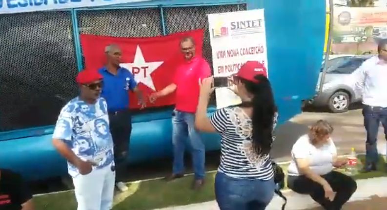 Um pequeno grupo de sindicalistas e representantes de partidos da esquerda fizeram um protesto no…