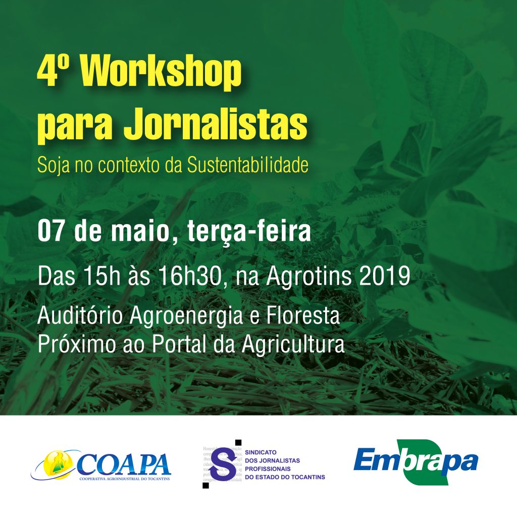 Durante a Agrotins 2019, em Palmas-TO, será realizado o 4º Workshop para Jornalistas: Soja no…