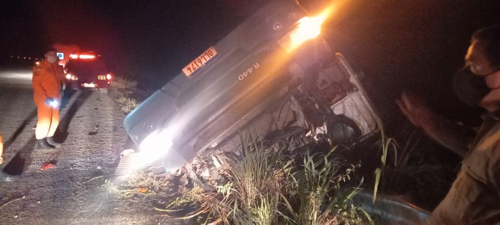 Nesta segunda-feira (08) um ônibus saiu da pista da BR-153 e foi parar no meio…